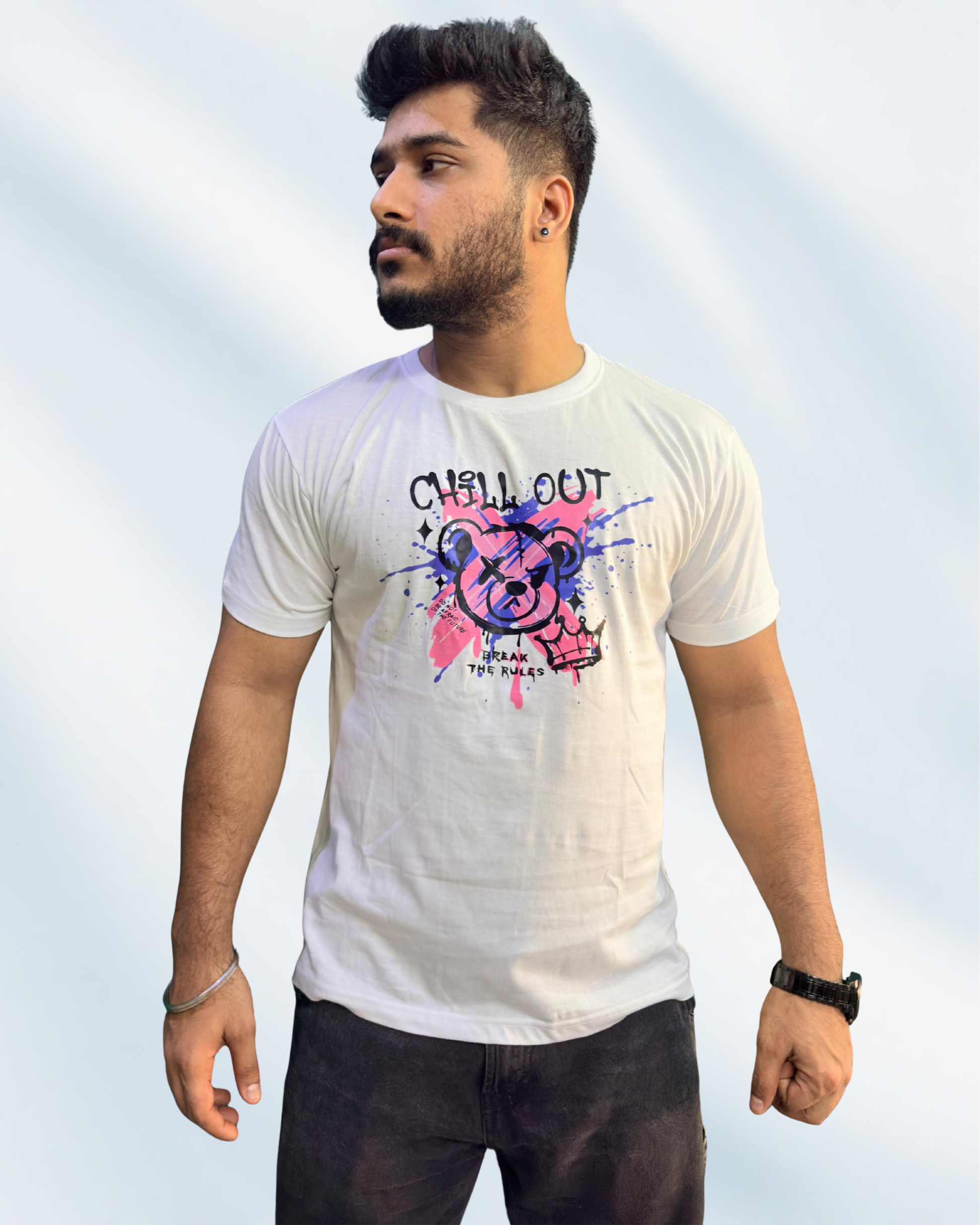 White “Chill Out – Break the Rules” Graphic Unisex Cotton T-Shirt.