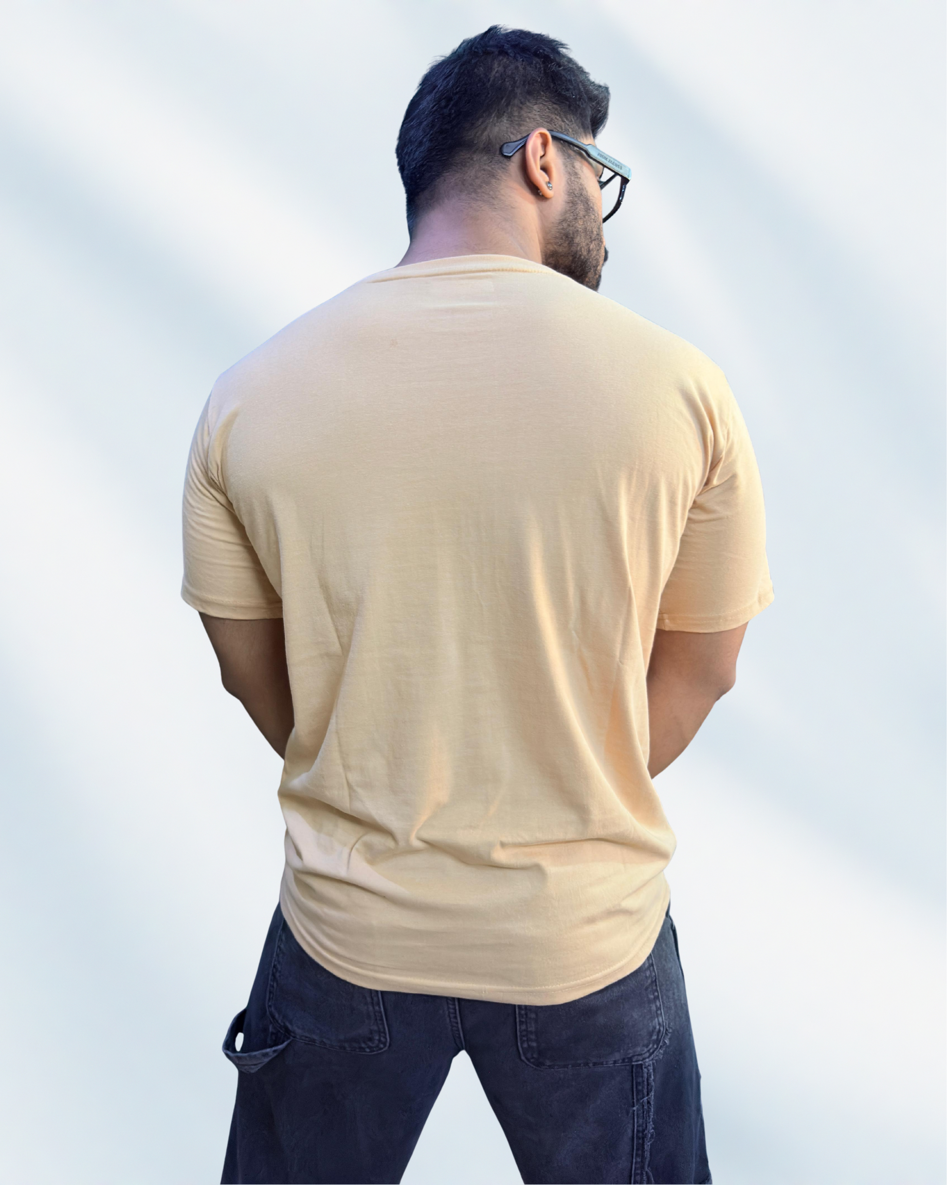 THE MOKSH SOUL MENS REGULAR PRINTED BEIGE T-SHIRT