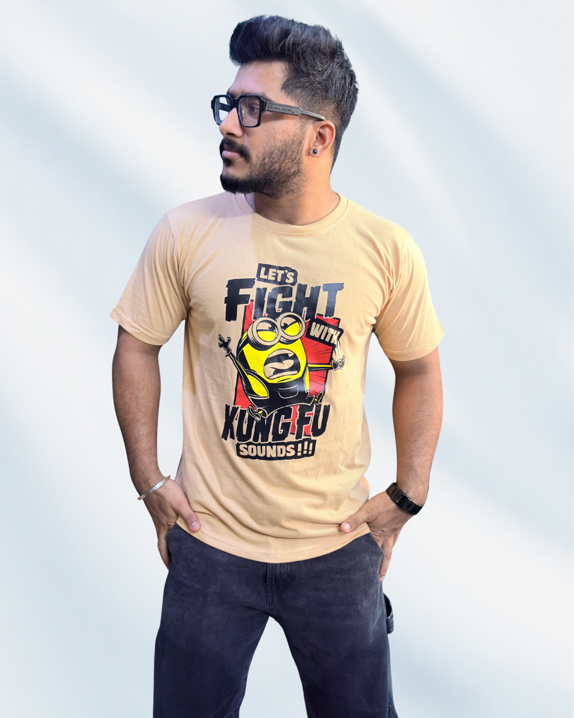 Beige "Kungfu Minion" Graphic Unisex Cotton T-Shirt. Made from soft, breathable cotton, this tee ensures all-day comfort whether you’re chilling with friends, heading to a casual event, or making a statement on social media.